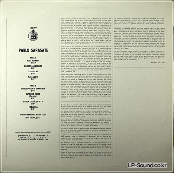 PABLO SARASATE VIOLINISTA EDUARDO ASIAIN HISPA VOX URTRA RARE (1장 판매완료) > 실내악곡