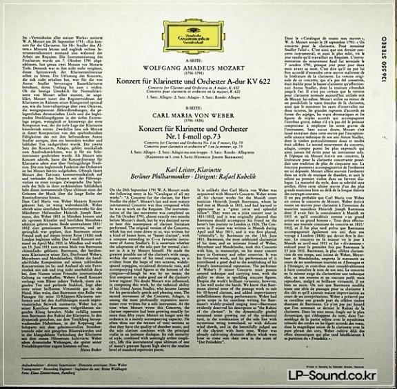 MOZART - CLARINET CONC / LEISTER / KUBELIK / DGG 136 550 STEREO > 협주곡