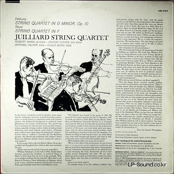DEBUSSY-RAVEL QUARTETSJUILLIARD QUARTETRCA LIVING STEREO SD LSC-2413 > 실내악곡