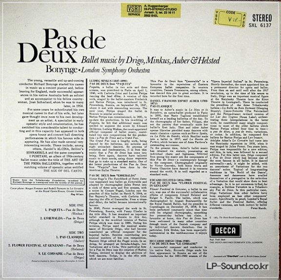 RICHARD BONYGE PAS DE DEUX BALLET MUSIC DRIGO MINKUS SXL 6137 > 관현악곡