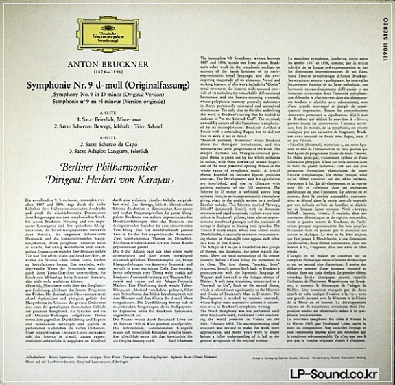 BRUCKNER SYMPHONIE NR 9 D-MOLL 139 011 HERBERT VON KARAJAN 139 011 > 관현악곡