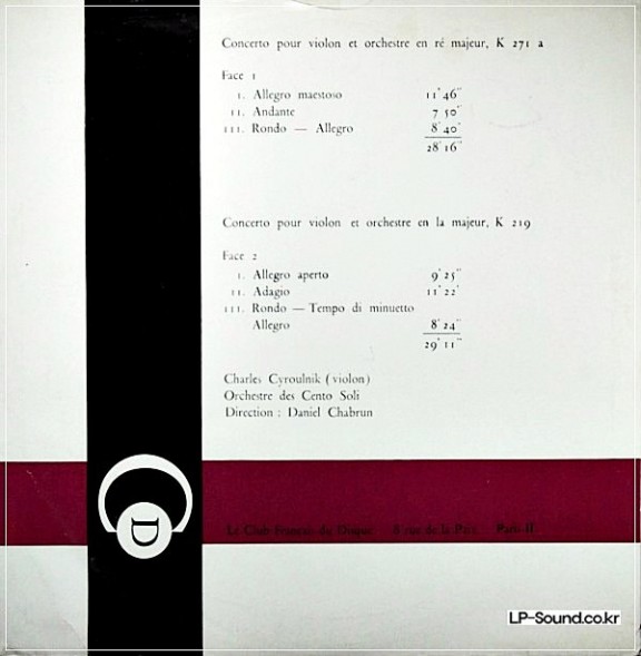 MOZART / VIOLIN CONCERTO / CYROULNIK CENTO SOLI CHABRUN CFD 137 > 협주곡