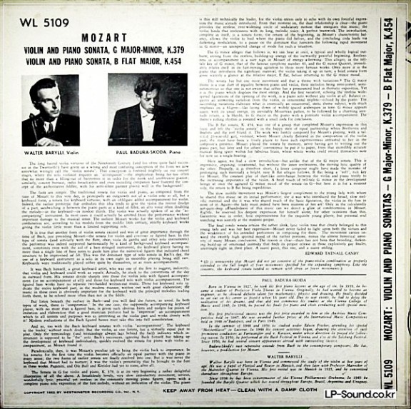 MOZART VIOLIN AND PIANO SONATAWALTER BARYLLIWL 5109 ED1 > 실내악곡