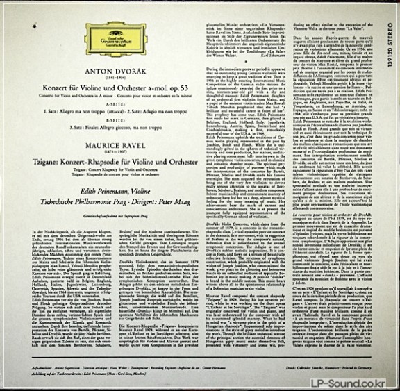 DVORAK RAVEL TZIGANE PEINEMANN DGG 139 120 SLPM > 협주곡