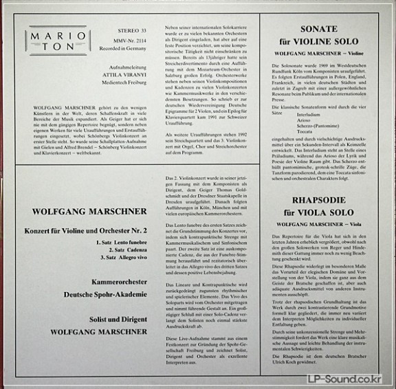MARSCHNER PLAYS MARSCHNER - LIVE 1990 LP PRIVATE MARIOTON > 협주곡