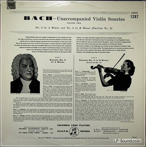 J.S.BACH THE UNACCOMPANIED VIOLIN SONATAS JOHANNA MARTZY, 33CX 1287 > 독주곡