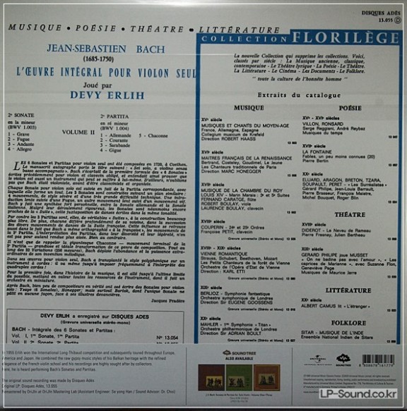 J.S. BACH SONATA AND PARTITA SONGS FOR UNACCOM VIOLIN / DEVY ERLIH > 독주곡