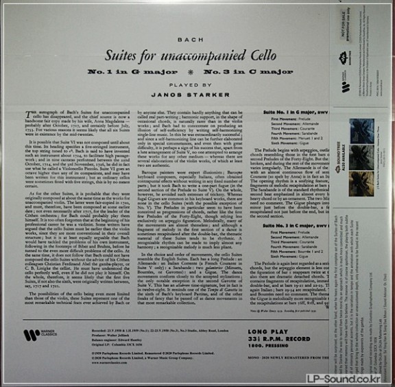 JANOS STARKER-BACH: SIX SUITES FOR VIOLONCELLO SOLO NO.1/3 SEALED > 독주곡