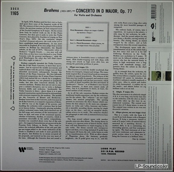 BRAHMS VIOLIN CONCERTO MARTZY KLETZKI 33CX 1165 SOUNDTREE > 협주곡