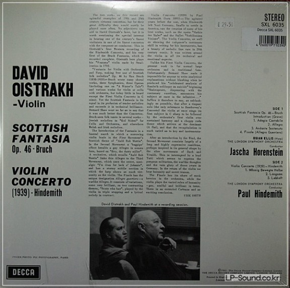 BRUCH: SCOTTISH FANTASIA / HINDEMITH: OISTRAKH / HORENSTEIN 180GM SXL 6035 > 관현악곡