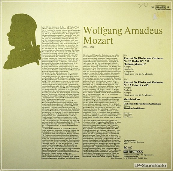 MOZART PIANO CONCERTOS 13 & 26 MARIA JOAO PIRES EMI > 협주곡