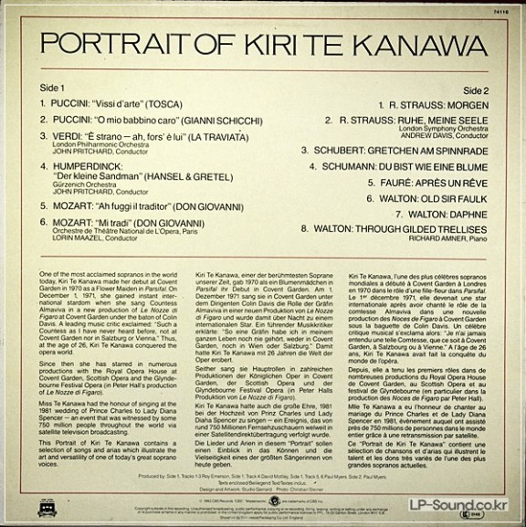 KIRI TE KANAWA PORTRAIT OF CBS RECORDS MASTERWORKS EX 39208 > 성악곡
