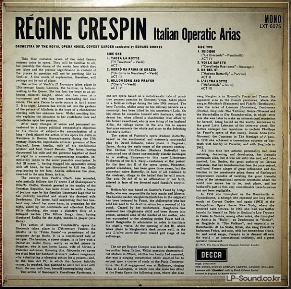 REGINE CRESPIN ITALIAN OPERATIC ARIAS 1963 DECCA LXT 6075 > 성악곡