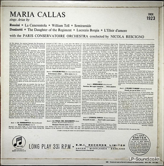 CALLAS SINGS ROSSININ & DONIZETTI ARIAS:PARIS CONSERVATOIRE ORCHESTRA: 33CX 1923 > 성악곡