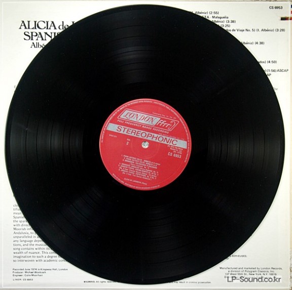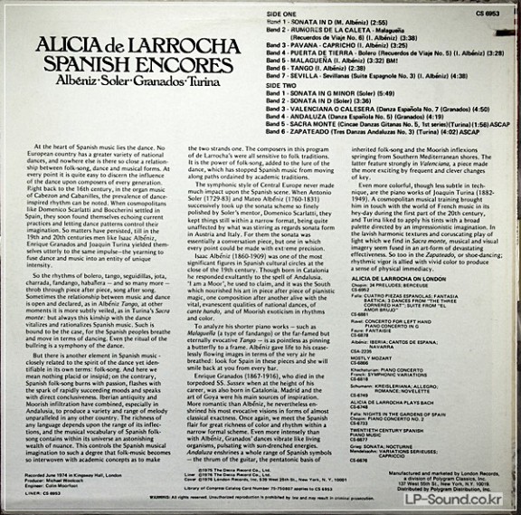 ALBENIZ ALICIA DE LARROCHA SPANISH ENCORES LP 1976 LONDON FFRR CS-6953 > 성악곡