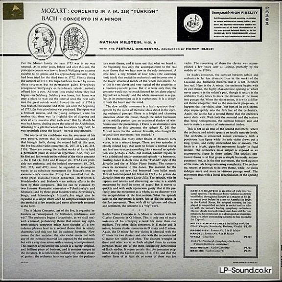 MOZART / BACH VIOLIN CONCERTOS NATHAN MILSTEIN CAPITOL P 8362 > 협주곡