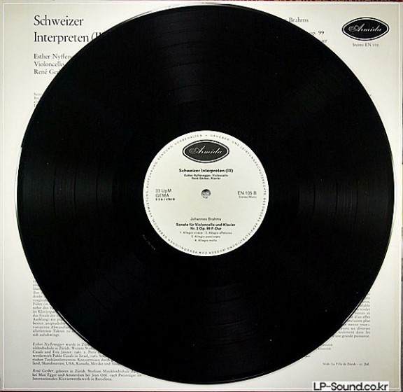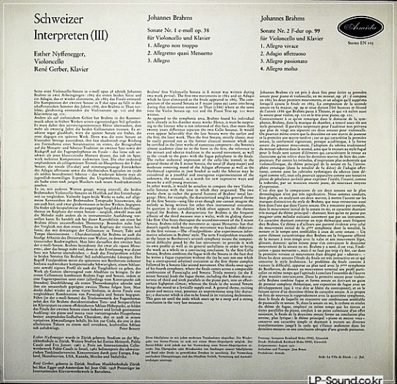 ESTHER NYFFENEGGER CELLO SONATAS BRAHMS 1STPRESS SWISS > 실내악곡