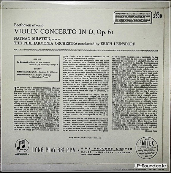 BEETHOVEN VIOLIN CONCERTO MILSTEIN SAX 2508 SIGNATURE 1976 > 협주곡
