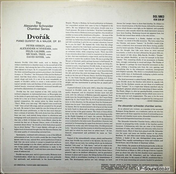 DVORAK - PIANO QUINTET SCHNEIDER / GALIMIR / TREE GL 5863 > 실내악곡