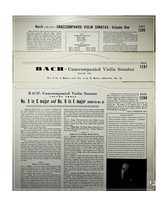 J.S.BACH THE UNACCOMPANIED VIOLIN SONATAS JOHANNA MARTZY, 33CX 1286 > 독주곡