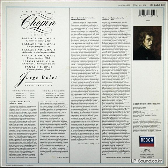 BOLET. CHOPIN (BALLADES; BARCAROLLE; FANTASIA). DECCA 417 651 > 독주곡
