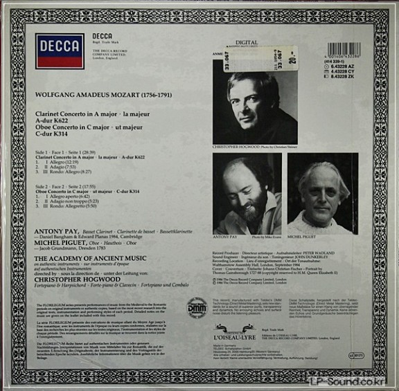 MOZART CLARINET/OBOE CONCERTOS L'OISEAU-LYRE 414 339-1 > 협주곡