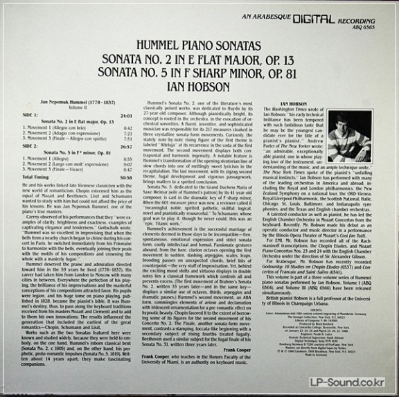 HUMMEL PIANO SONATA IAN HOBSON DIGITAL AN ARABEQUE DIGITAL ABQ 6565 > 독주곡