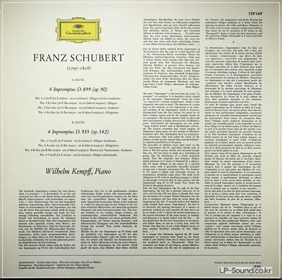 SCHUBERT IMPROMPTUS WILHELM KEMPFF PIANO 139 149 > 독주곡