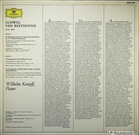 BEETHOVEN VARIATIONS WILHELM KEMPFF DG 2530 249 > 독주곡