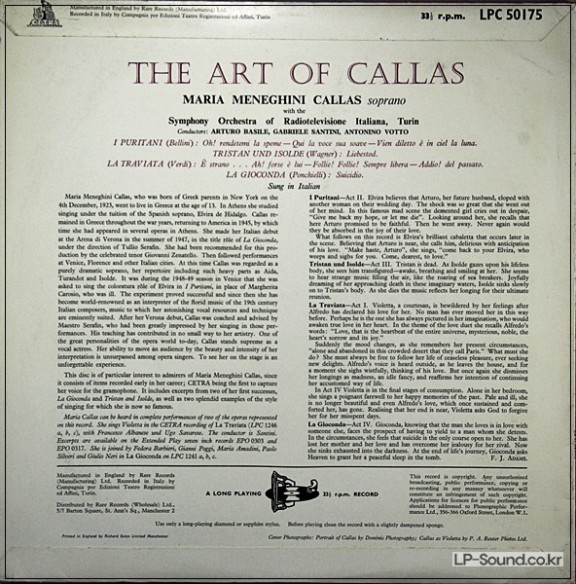 THE ART OF MARIA CALLAS TRISTAN PURITANI TRAVIATA ETC CETRA > 성악곡