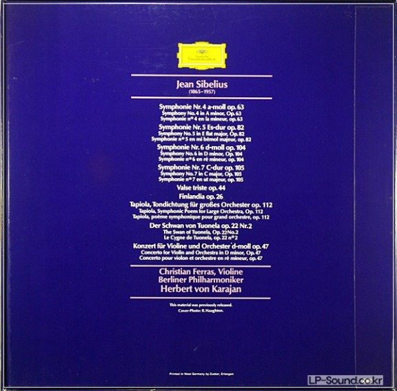 SIBELIUS, SYMPHONIEN 4,5,6,7, VIOLINKONZERT, KARAJAN 4LP BOX > 관현악곡