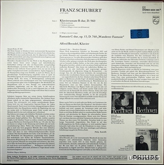 SCHUBERT SONATA D 960 WANDERER FANTASIE *BRENDEL PHILIPS 6500 285
