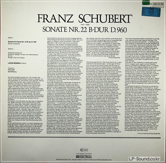 SCHUBERT SONATA IN B FLAT D.960 LAZAR BERMAN EMI > 독주곡