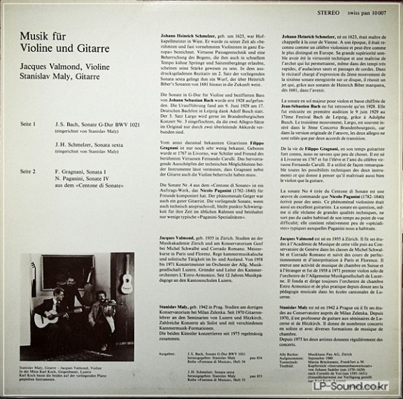 JACQUES VALMOND VIOLIN STANISLAV MAY GUITAR BACH SCHMELZER GRAGNANI SWISS LP PAN > 실내악곡