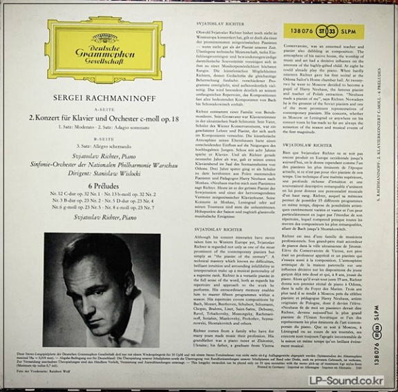 RICHTER RACHMANINOV PIANO CONCERTO NO.2 DGG RED STEREO SLPM 138 076 > 협주곡