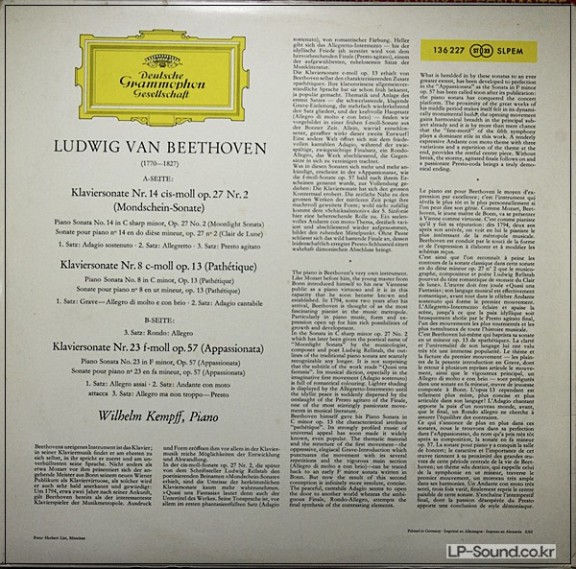 BEETHOVEN NO.14/13/23 WILHELM KEMPFF DGG 136 227 > 독주곡