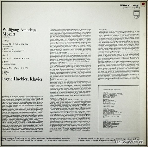 MOZART PIANO SONATA KV 284 KV 333 HAEBLER PHILPS 802 827 LY > 독주곡