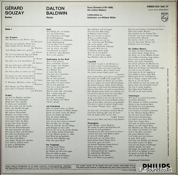 SCHUBERT: DIE SCHöNE MüLLERIN - SOUZAY/BALDWIN (PHILIPS 835 260 LY > 성악곡