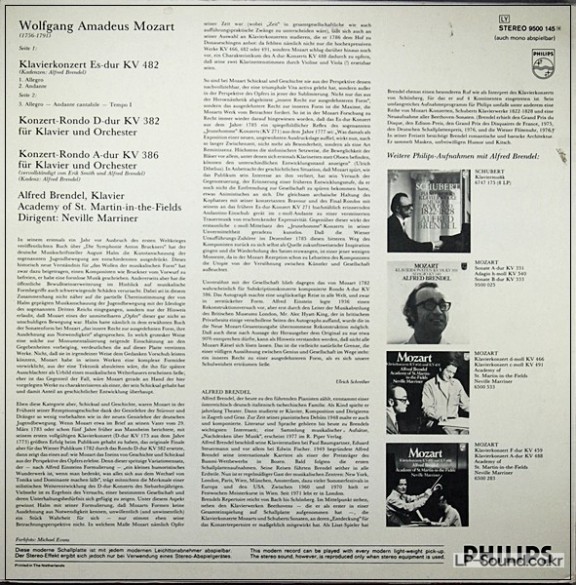 • MOZART CONCERTO K.482 RONDOS K.382, 386 BRENDEL PHILIPS 9500 145