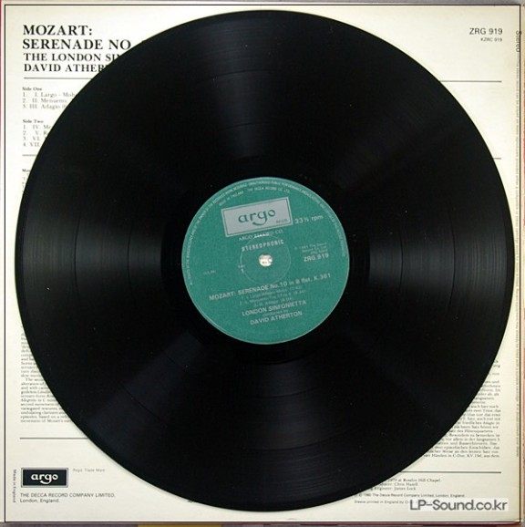 MOZART: SERENADE NO. 10 IN B K361 ATHERTON / LONDON SINFONIETTA ZRG 919 > 실내악곡