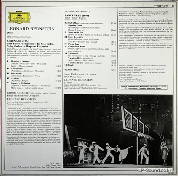 GIDON KREMER BERNSTEIN SERENADE/FANCY FREE DG STEREO 2531 196 > 협주곡