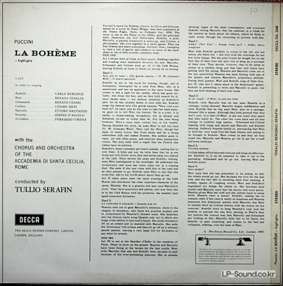 PUCCINI LA BOHEME (HIGHLIGHTS) TEBALDI, BERGONZI SERAFIN SXL 2248 > 성악곡