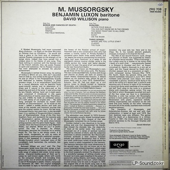 MUSSORGSKY - WITH DAVID WILSON- BENJAMIN LUXON SINGSZRG 708 > 성악곡