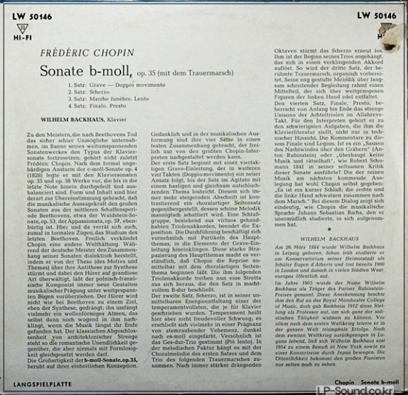 CHOPIN / SONATA IN B MINOR / WILHELM BACKHAUS / DECCA LW 50146 10" > 독주곡