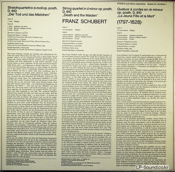 SCHUBERT/STREICHQUARTETT/QUARTETT COLLEGIUM AUREUM/BASF 2022059 > 실내악곡