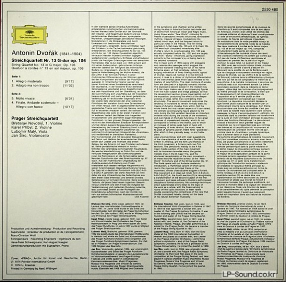 DVORAK QUARTET OP 106 PRAGER STRING QUARTET DG 2530 480 > 실내악곡