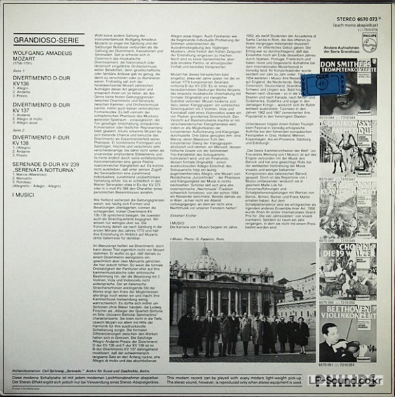 MOZART "SERENATA NOTTURNA" / 3 DIVERTIMENTI PHILIPS 6570 073 > 실내악곡