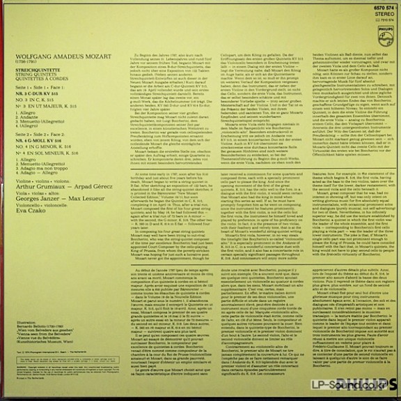 MOZART STREICHQUINTETTE KV 515 & KV 516 PHILPS 6570 574 STEREO