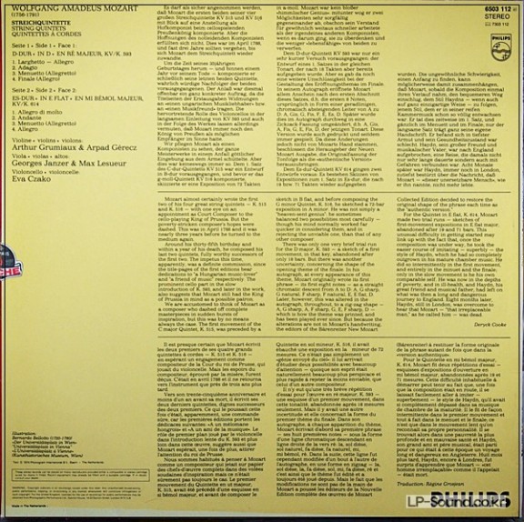 MOZART STRING QUINTETS / GRUMIAUX TRIO / ARPAD GERECZ / MAX LESUEUR 6503 112 > 실내악곡