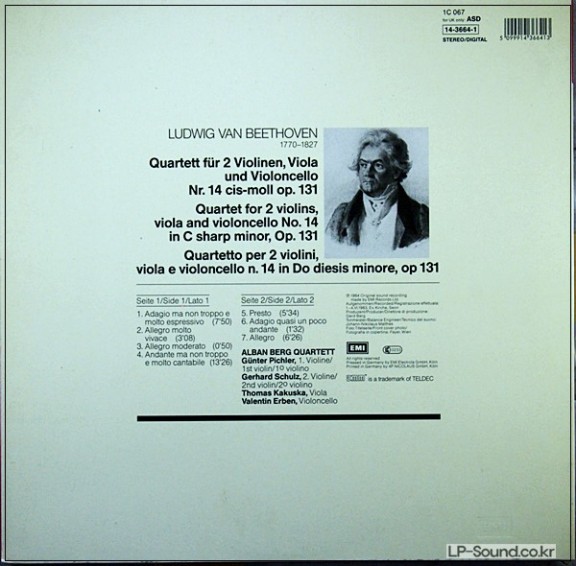 BEETHOVEN STREICHQUARTET CIS-MOLL OP. 131/ LP ALBAN BERG QUARTET > 실내악곡